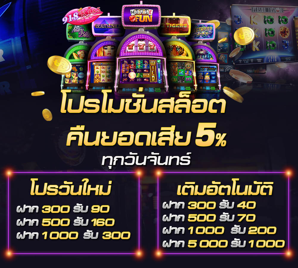 - สมาชิกทุกท่านที่เล่นเสียรับคืน 5% ทุกวันจันทร์ สูงสุด 20,000 บาท